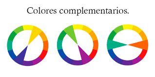 Colores complementariosSon los que se encuentran en el circulo cromático en posiciones opuestas entre si, como el magenta y el verde, el cyan y el rojo o el amarillo y el violeta. Esto no quiere decir que solo los colores primarios y secundarios tengan su complementario, ya que, por ejemplo, un amarillo anaranjado tendrá como complementario un azul verdoso; o un verde amarillento tendrá un violeta azulado.